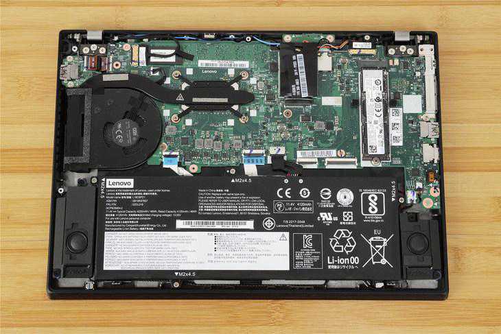 机身内部设计相当的常规,由于没有在商务本上显得十分鸡肋的独立显卡,散热模组的规模也做到了最小,对减轻重量有一定的帮助。另外内存并不支持扩展,不过好在板载内存均为双通道配置。