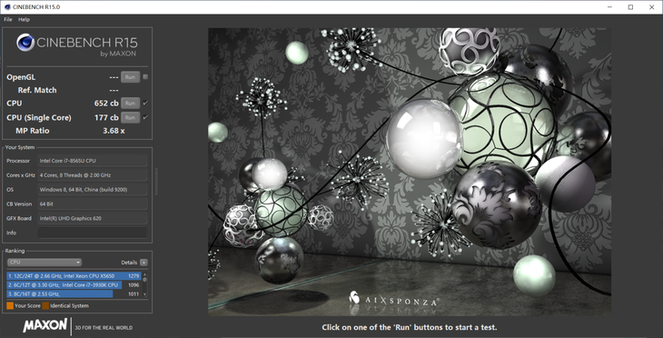 CineBenchR15中,多线程成绩达到652cb,单线程性能达到了177cb,已经达到了前一代标压i5甚至i7的水准,性能释放令人满意。