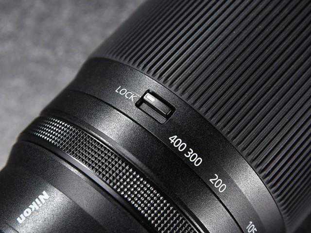 由于镜头采用外变焦设计,为了转场或者携带时的安全考虑,尼克尔Z28-400mmf/4-8VR也搭载了变焦锁设计。