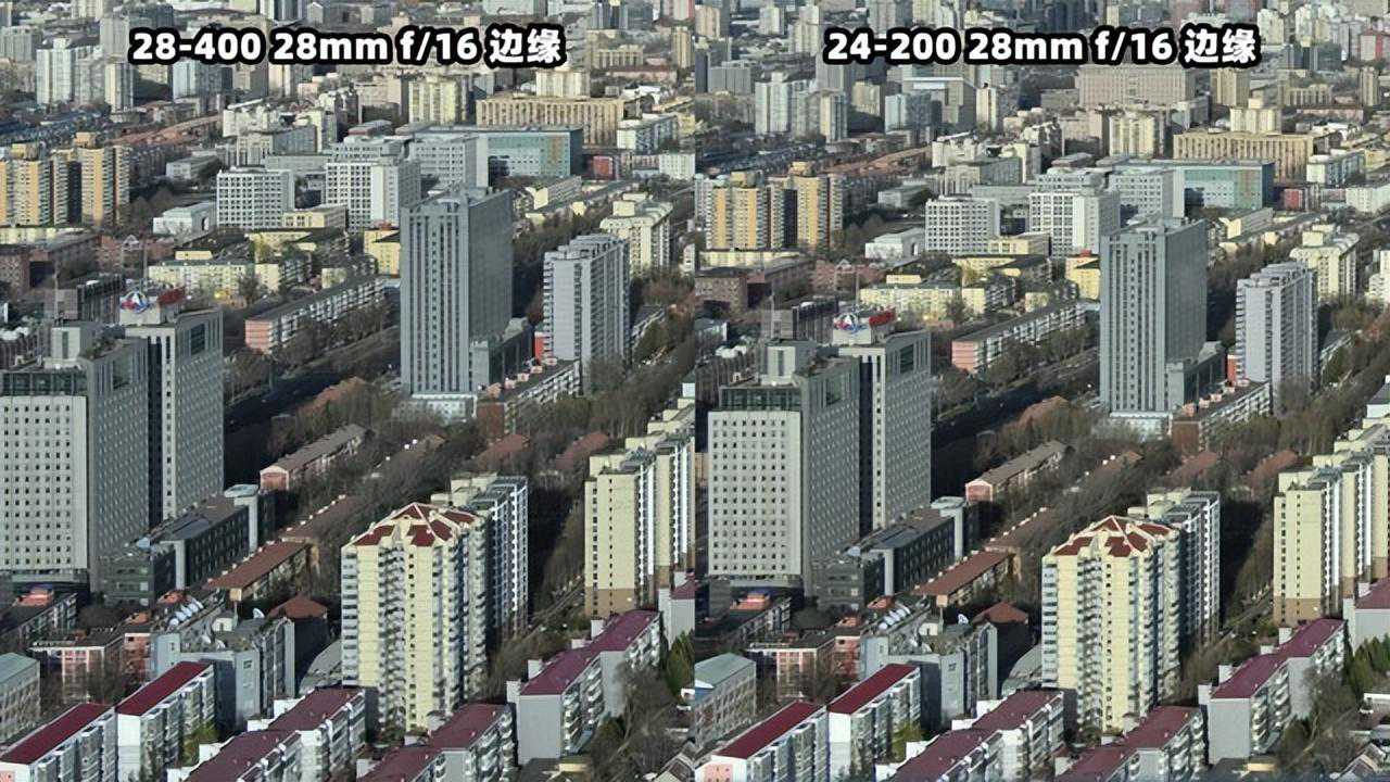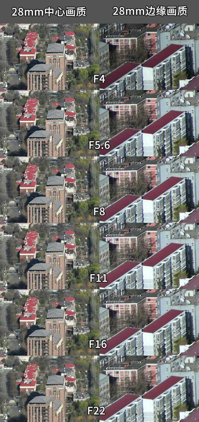 在28mm端,不论是中心画质还是边缘画质,我们可以看到两支镜头的表现几乎一致,肉眼几乎看不出来有任何区别。