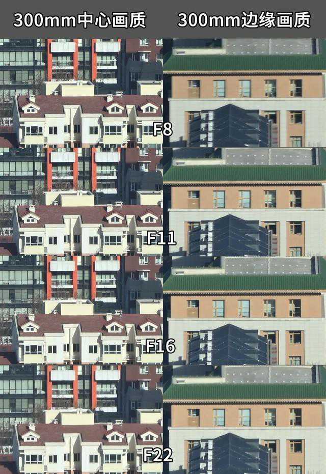 在300mm和400mm端,尼克尔Z28-400mmf/4-8VR的画质水平开始下降。可以看到此时镜头的中心画质表现依然比较理想,但是边缘画质水平有比较明显的下降。