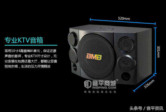 BMB卡拉OK系统,可以24小时不间断地商业使用。因为BMB成为世界卡拉OK一品牌。BMB音箱播放歌曲时,本音箱音色温暖、声底醇厚、音域宽广,可以应付各种类型的卡拉OK伴奏曲目,一首好歌、一个好的K歌高手加上这样一款完全为亚洲人所设计的卡拉OK箱,想必在KTV中你也找不到这样的感觉先进的外观设计,高音单元采用了声音扩散号角设计,给予听者非常好的环绕声感,采用双低音设计,给予听者非常有震撼力的声音效果。