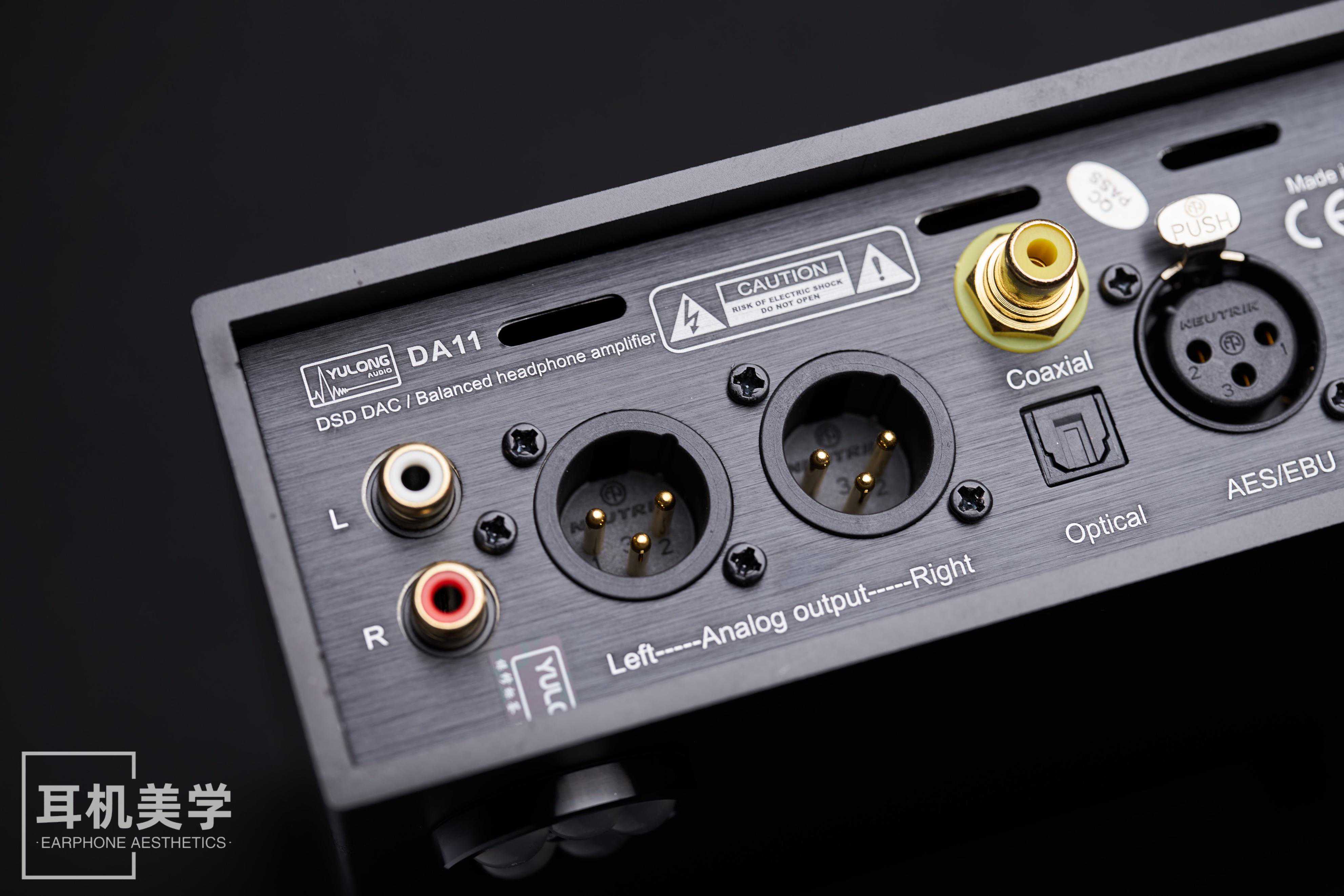 作为一台售价7千元左右的一体机,DA11更多的时候还是会被用来充当桌面HiFi的一站式解决方案,与机箱,显示器甚至音箱摆放在一块。因此,小巧的体积也成为了它必不可少的加分项。其长、宽、高分别为21*24.8*6厘米,比一张A4纸还要稍小一些。简洁大方的外观也使得DA11放在桌面上时丝毫不显突兀。机身正面仅由一枚多功能音量旋钮,一块用于显示工作状态的IPS屏幕,以及4.4平衡、6.35单端,和大4芯平衡三个接口组成,没有任何多余的按键。倒是背面的接口一应俱全,RCA音频输出、平衡音频输出、USB、光纤、同轴输入,以及AES数字音频接口一个都没落下,使得DA11既能够连接界面设备,直接播放音乐,又可以充当前级接驳功放,获取更高的性能上限。