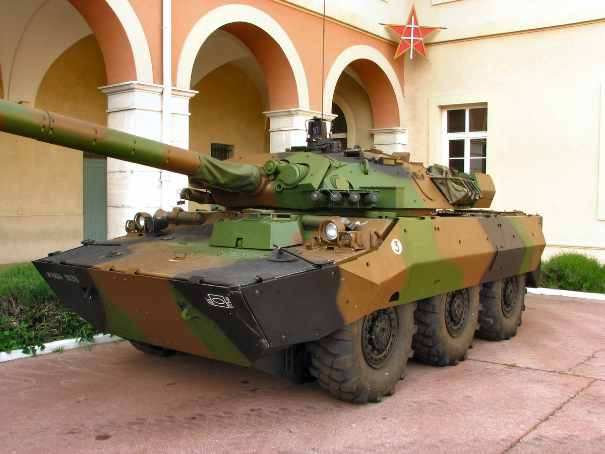 2290-2680。离地间隙,毫米可调,210—260。预订-铝合金,轧制,防弹。武装:105毫米F2线膛炮。枪管长度,口径48。枪支弹药38。VN角度,-8…+20度。潜望镜全景瞄准镜M389、M504,带激光测距仪M550,夜间被动DIVT13。机枪1×7.62毫米NF1。发动机功率,l。第300页。高速公路速度,公里/小时85。在崎岖地形上的速度,公里/小时40。高速公路续航里程1000公里。轮式6×6。悬挂类型:独立液压气动。爬坡度,30度。要克服的墙,。要克服的沟渠,。花车