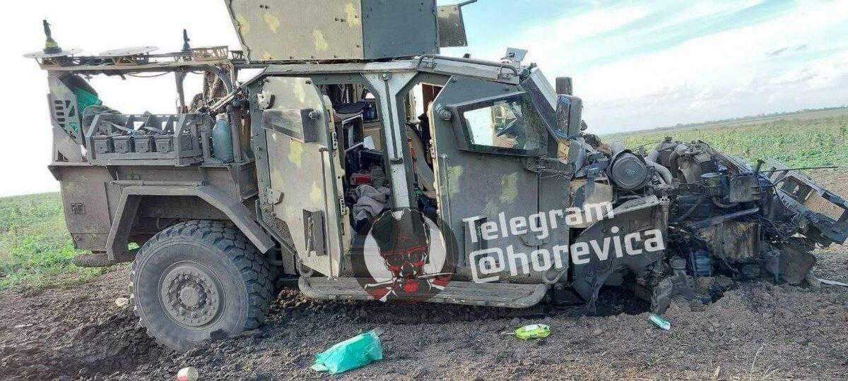 一辆从英国运往乌克兰军队的哈士奇装甲车在赫尔松地区被地雷炸毁。