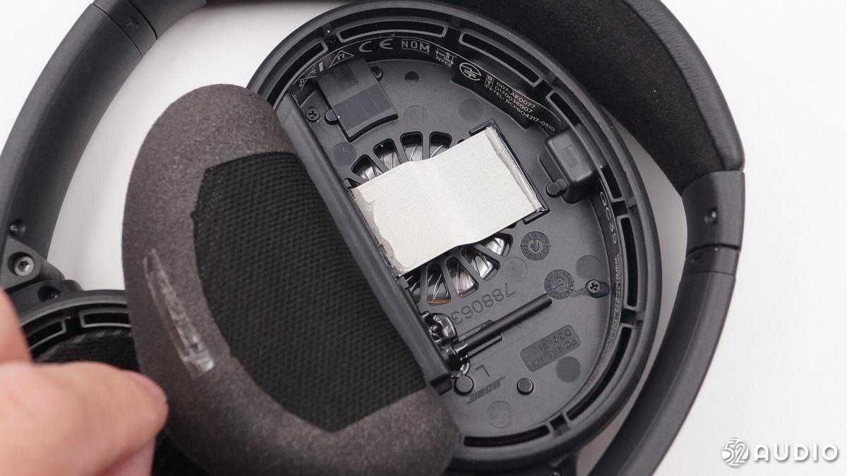 然后揭开右侧耳罩基布(基布是盖住和保护耳机内主件的内侧隔布)。