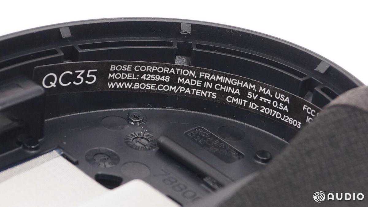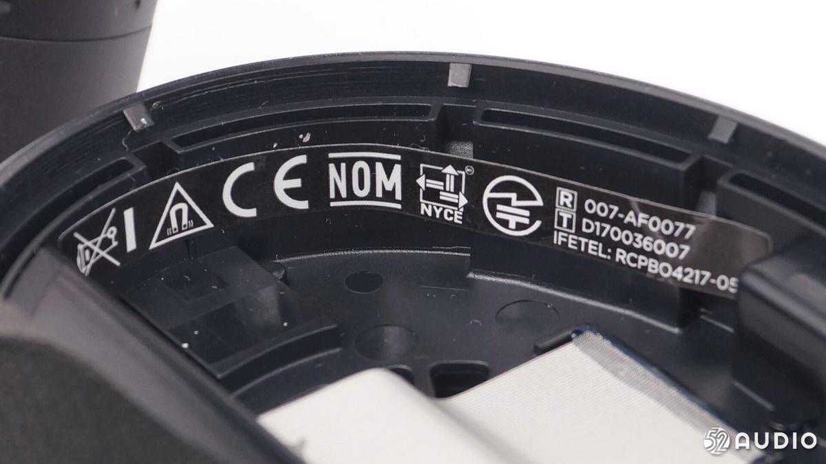 左侧耳罩内部的文字信息贴纸:美国马萨诸塞州弗雷明汉博士公司,型号:425948,中国制造,5V⎓0.5A,CMITID:2017DJ2603。