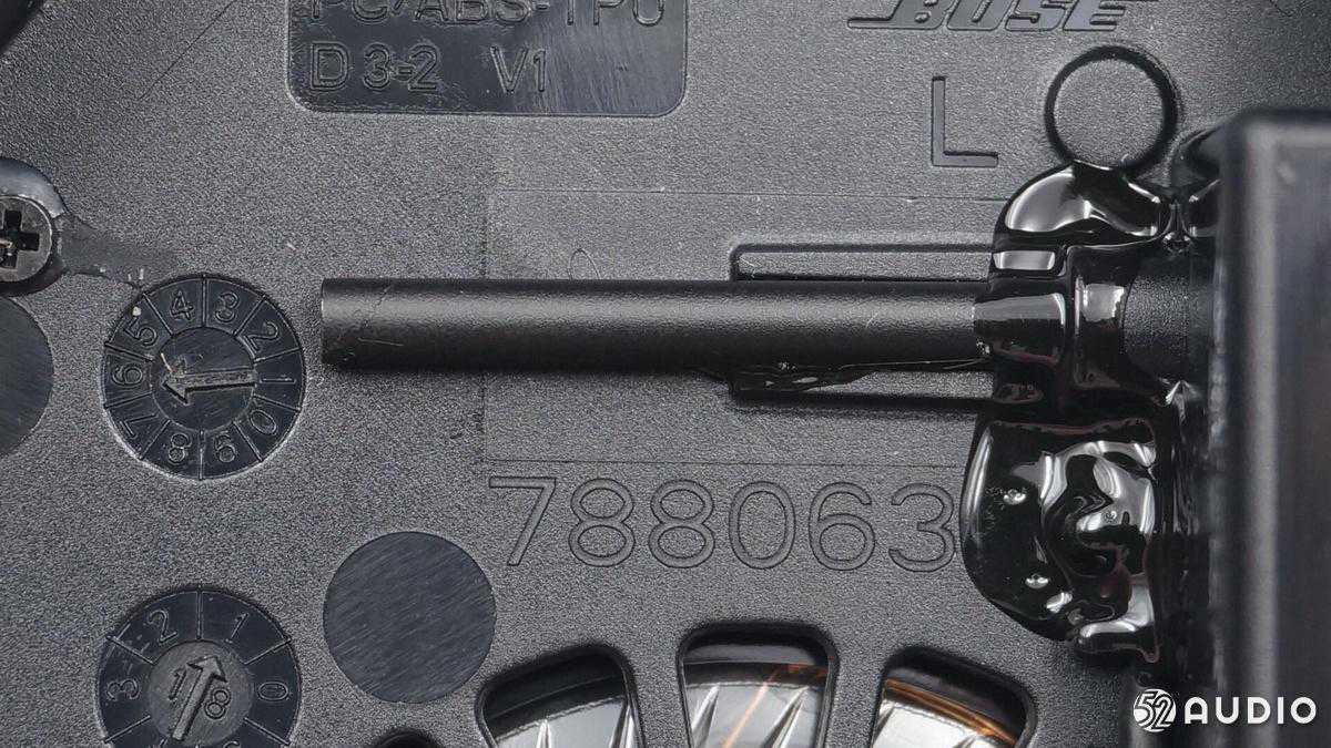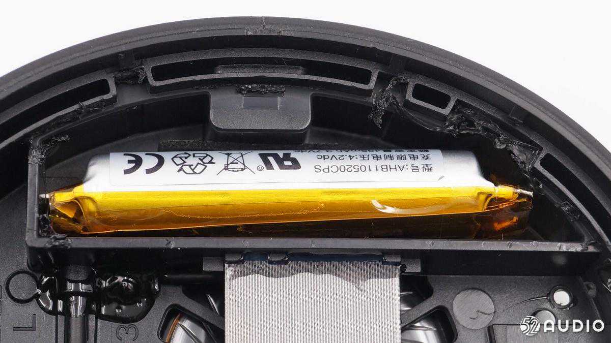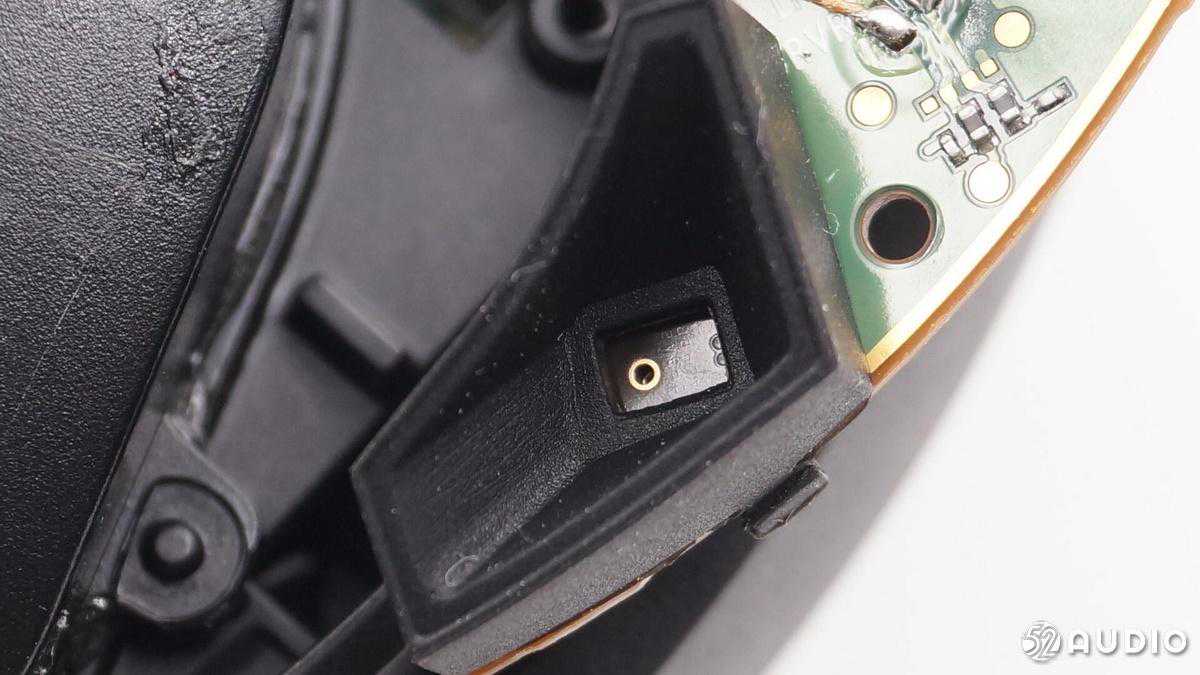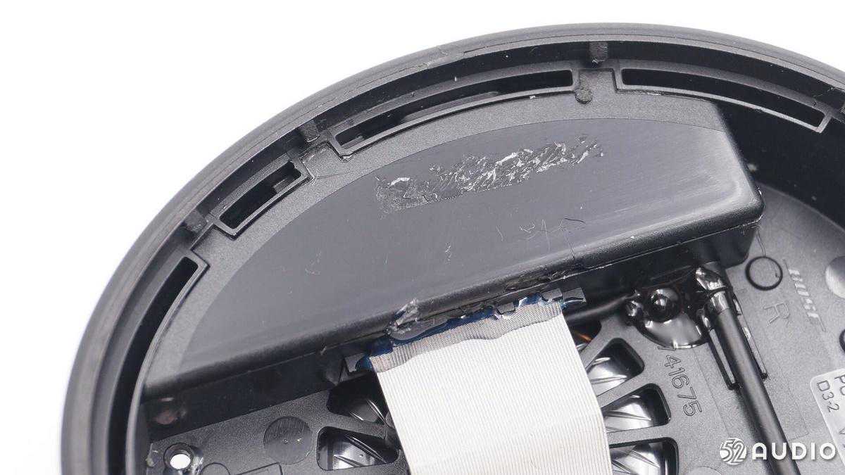 左侧的耳机内部是电池仓,下面可以看到单元振膜的纹路。