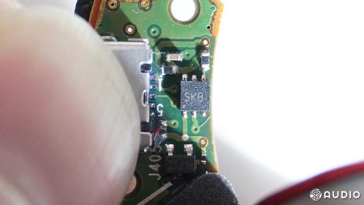 右耳电路板的背面是两颗DSP芯片,用于降噪功能。