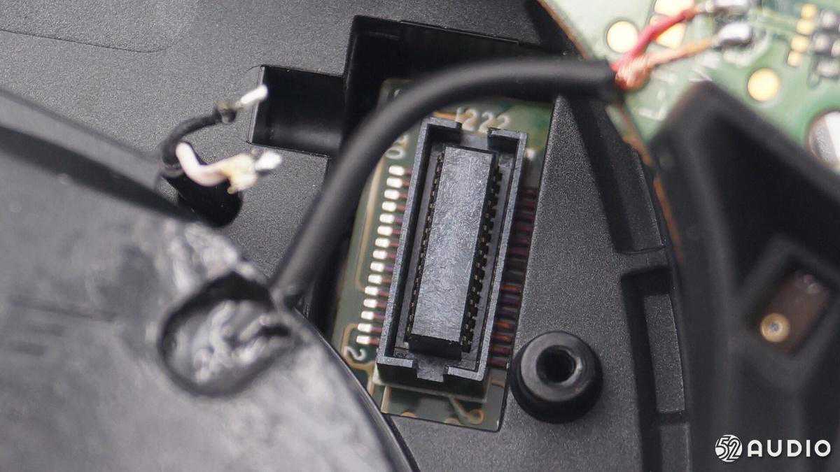 左侧耳罩的3.5mm音频接口,外接3.5mm音频线可以变为有线耳机。