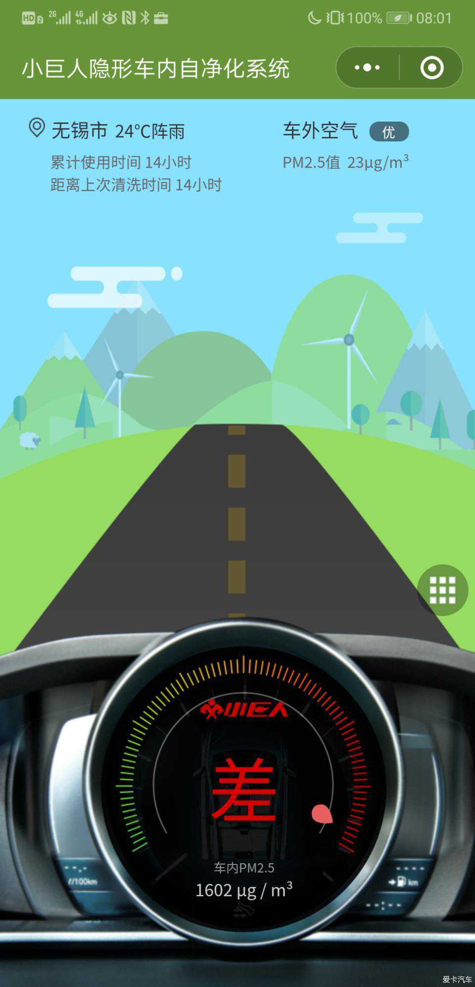 前后十三分钟,程序显示车内空气质量优于车外。个人感觉上烟味没啥了。