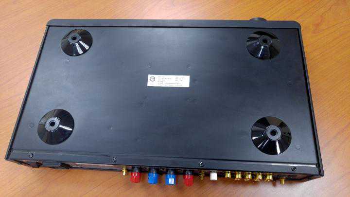 翻过来,底部也没有散热孔,这夸张了,NAD这么有信心,不怕高温烧坏了?上网查才知道用了HYPEXD类放大模组,跟以前的AB类有硕大的变压器不同了,D类的设计是不会产生高温的,失真也小,从此机内再也不用担心有灰尘了。
