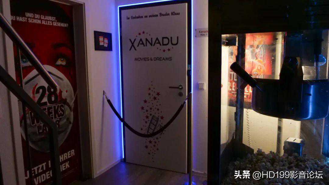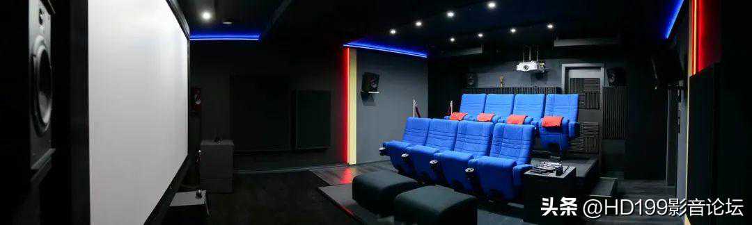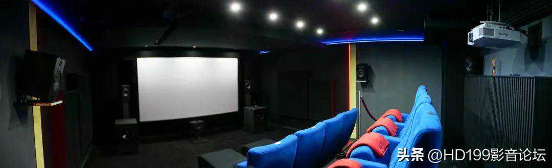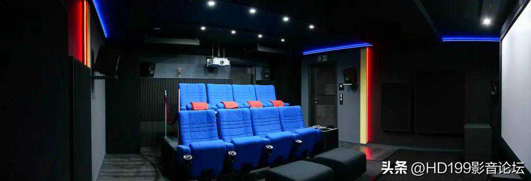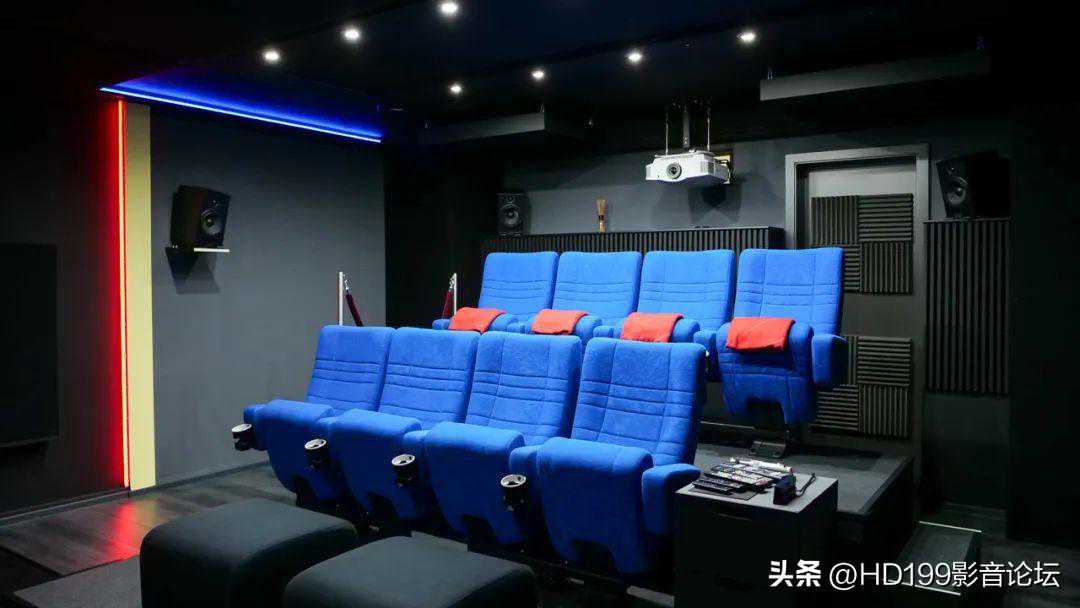 影音室大小为5米×6.5米×2.35米,入口在侧面,屋子最后有一扇小门,可通往器材室和音像收藏间。