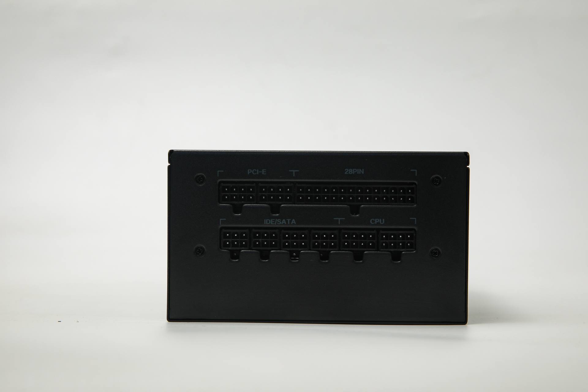 全模组接口的接口部分为双8pinPCIE,双4+4pinCPU,可以良好的支持大功率的显卡跟CPU,6个sata供电也足够一般用户使用,主板接口为20+24pin。全模组电源使用方便之处在于按需进行插入就可以了,傻瓜式操作同时避免过多无用线束打乱内部空间。