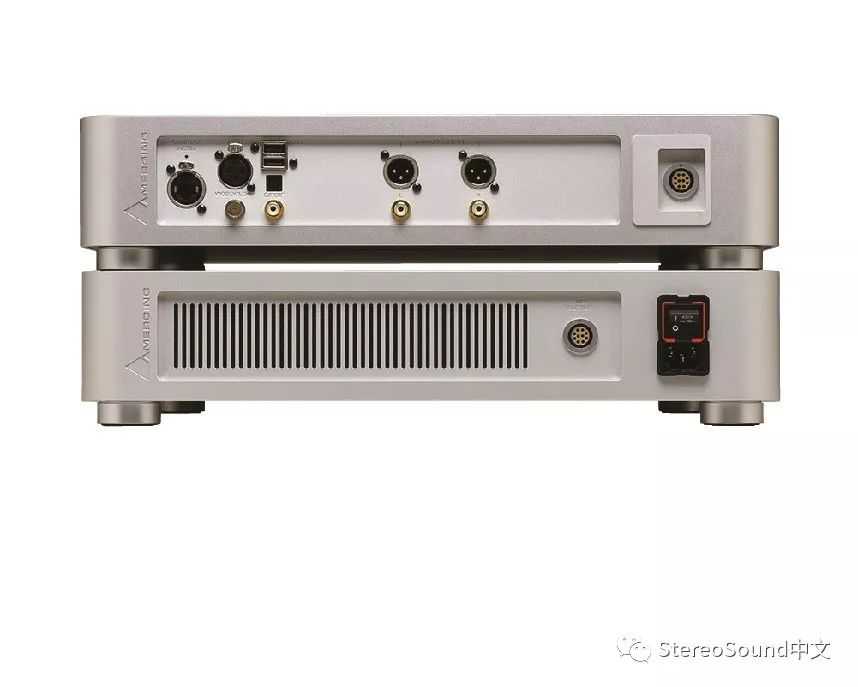 本体(上)+电源部分(下)的背面。本体机身除了LAN端子,还配有同轴,光纤,平衡等各种数字输入和锁定输入端子(BNC)。另外,A型的USB端子也具备2路,能连接外部储存等进行音乐播放。电源部背面设有散热孔,无风扇冷却式样。