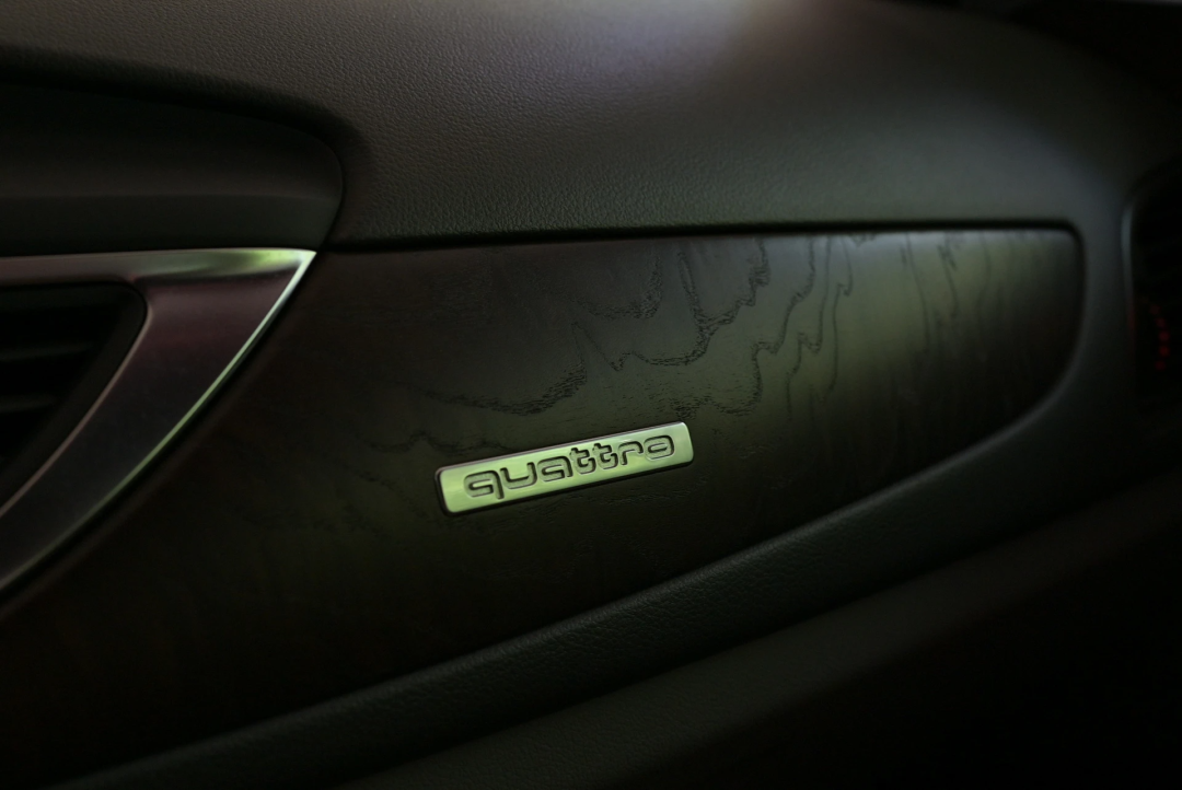 再啰嗦一句哈,这台A6L,是我见过的那么多同款A6里面,这两处线条对得最整齐的,就是车门上这个饰条边线,对齐中控台的同造型边线。