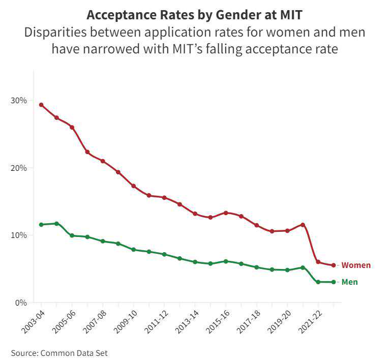 其实,录取率的性别差异并非独见于MIT一校,而是美国高校圈的普遍现象。