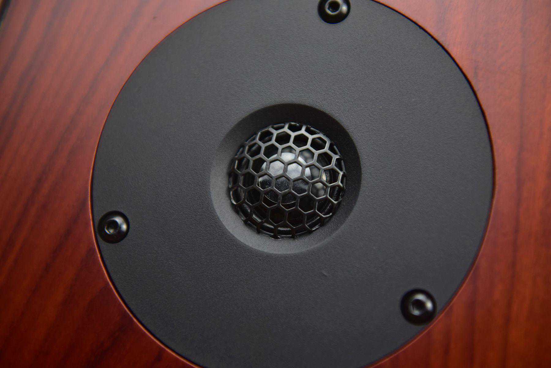 ▲高音单元部分,致敬3用的是19mm的硬化铝振膜搭配双磁体的磁炉结构,高音分割振动达到了34KHz,响应和动态表现相比传统丝膜会更有更好的表现。