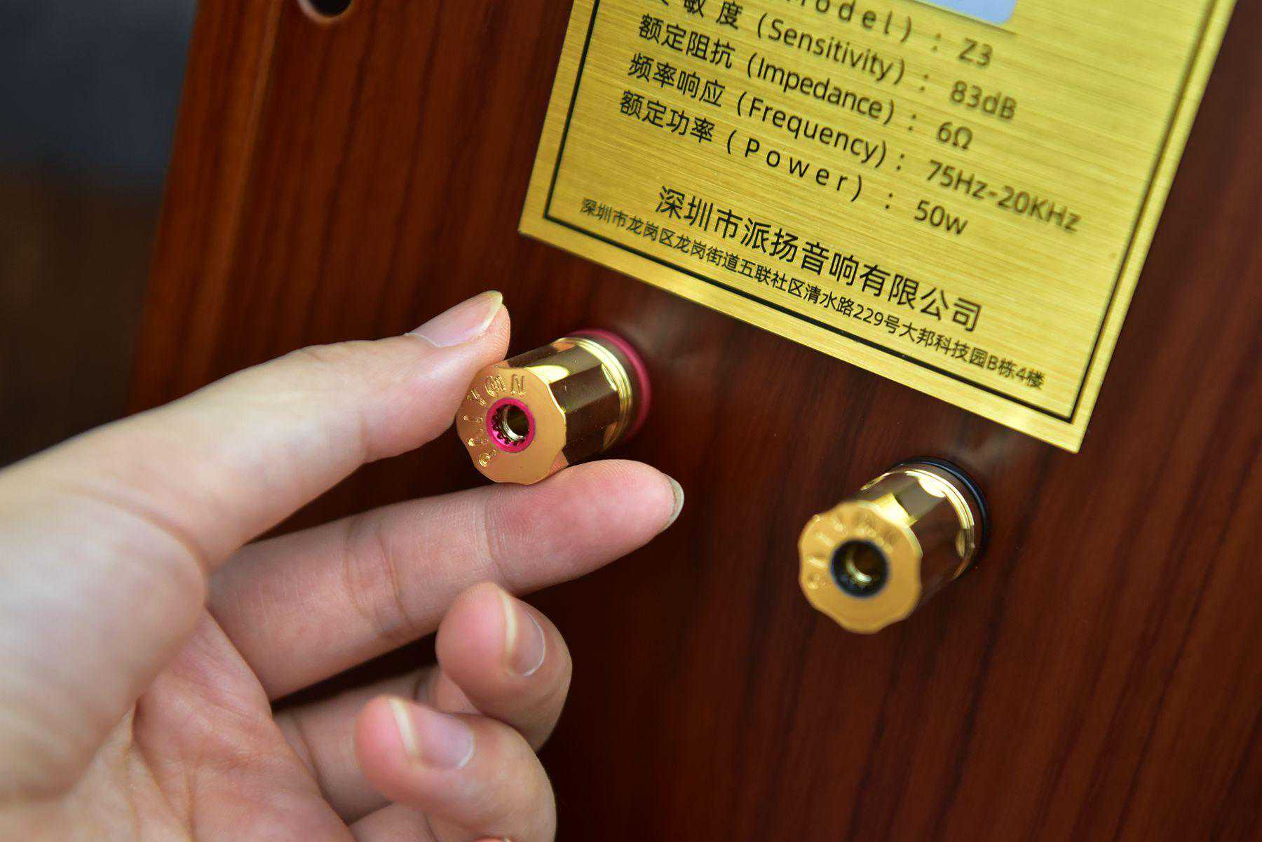▲镀24K紫铜接线柱展示,细节上也做到位了。