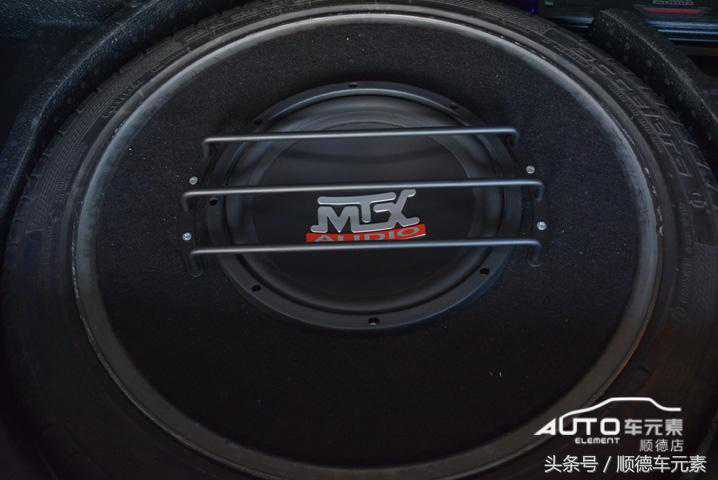 低音单元选择的是美国MTX10-04十寸低音炮额定功率达到250W,动态明显。低音采用备胎倒模安装,高效发挥喇叭性能的同时又不占用尾箱使用空间,且又不失美观,可谓两全其美!