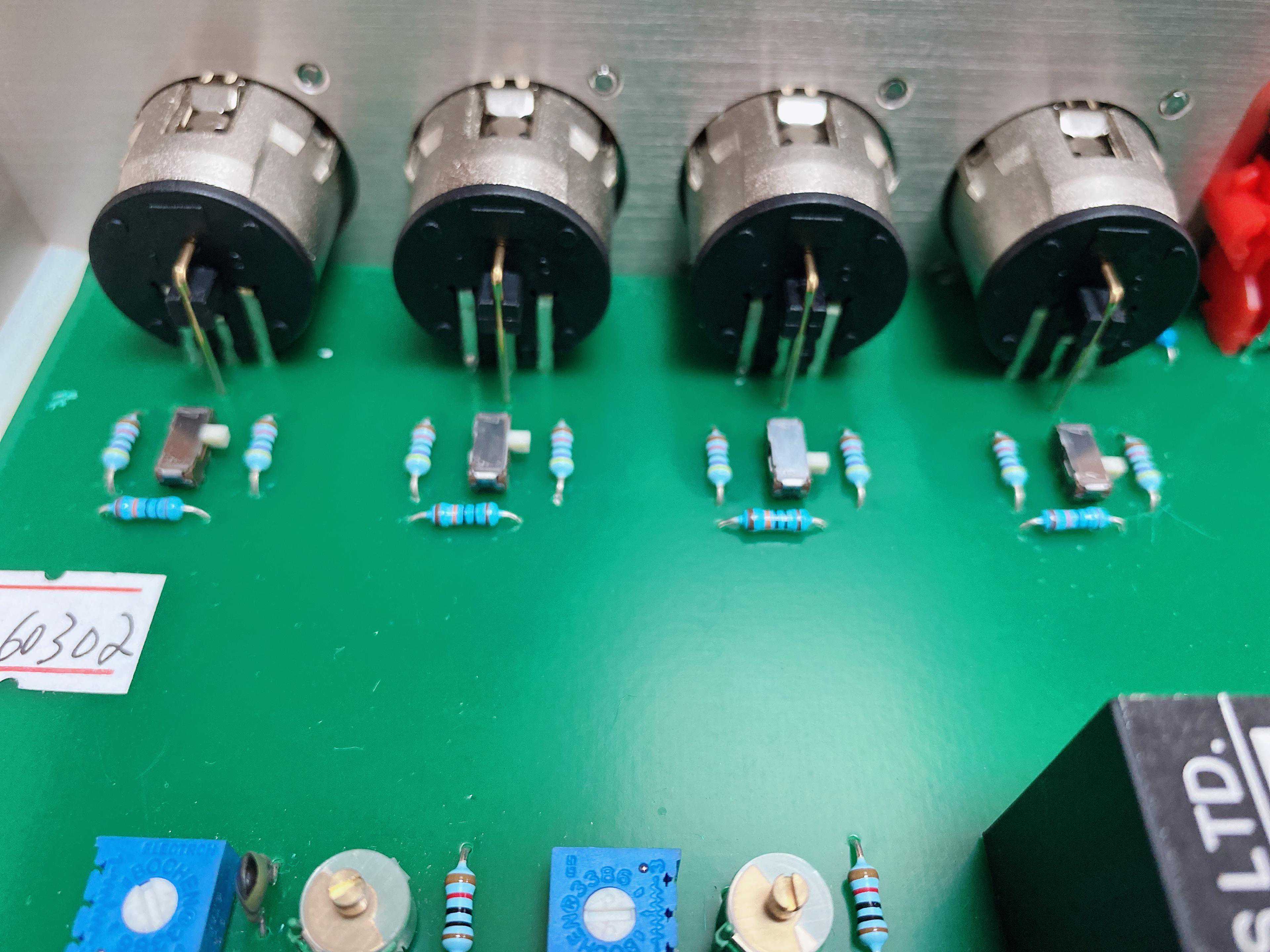 2组平衡输入(出厂设置第一组输入灵敏度调为0dB,2组为-10dB)。