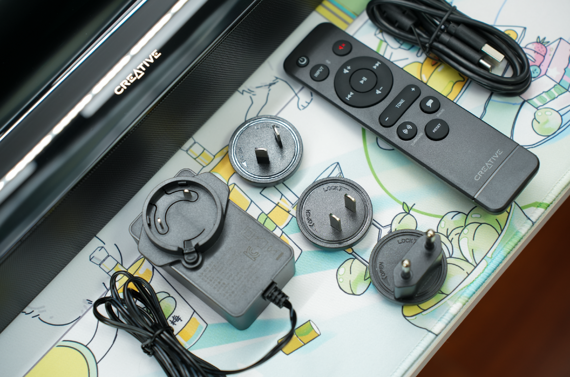 值得注意的是创新StageSE是全球版本,因此配备了电源适配器自带了3个AC接口,方便用户在不同地区使用。