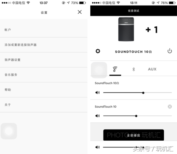 在详细分析这款音箱音质之前,我们再来看一下Bose的APP,因为这次测评请来了两尊BOSESoundtouch10所以我们要给各位展示一个非常炫酷的功能,就是设备互联。