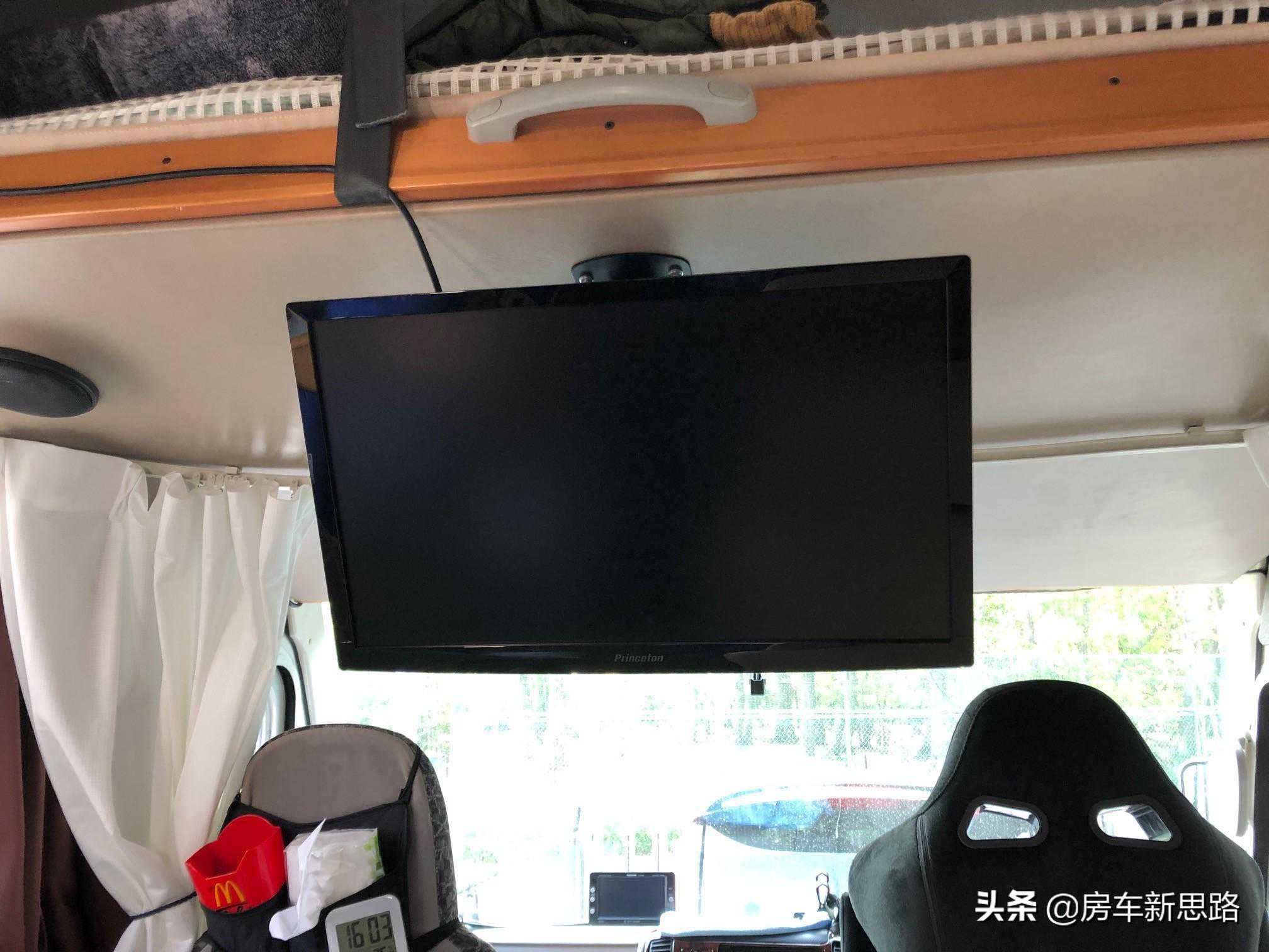 因为是露营车所以空间很大,所以使用了桌面PC用的23英寸的显示器。(稍后将描述安装方法)