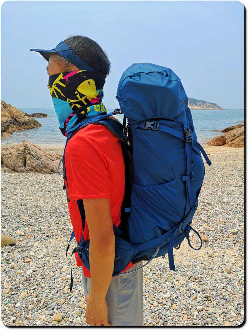 2.容量大,背负能力强。34L不带顶包,方便取物。36L带有顶包,负载能力更强。34L的S码实际容量只有32L,我曾多次背负他在南方露营,最大负重约13Kg,宽厚的腰带能够给与足够的支撑。