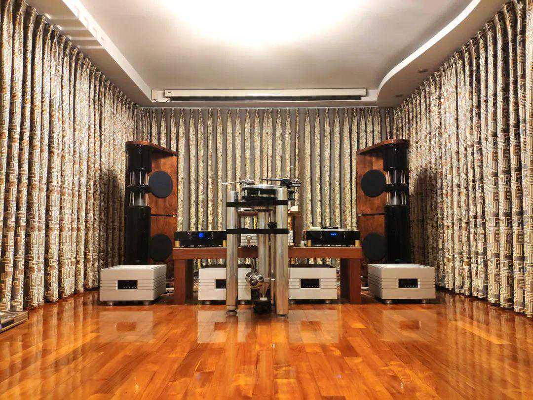 上次到访何府,我就发现这里的声音有不错的音场形态感和全频超高的分析力,尤其是偌大的音箱在音场中隐身的能力,堪称GermanPhysiks音箱的强项,而在透明的音场内,唱片中的各种细节都非常自然地出现在该出现的地方,一点不多也一点不少。但何先生这个聆听环境并非完美无瑕,要挑缺点还是有的,比如空间中吸音物料太过单一,三面墙均使用相同的两层厚薄不一的落地窗帘,造成了某段比较窄的中高音吸音过多了,因此听感削弱了DDD全频全向扩散单元那种无敌的庞大空间感,音场虽透明,但深度和宽度都仍有提升的空间。低频方面,虽然中低频非常丰沛,但超低频的下潜却欠缺说服力,因此可感觉到低频鼓声隆隆却站不稳脚跟。