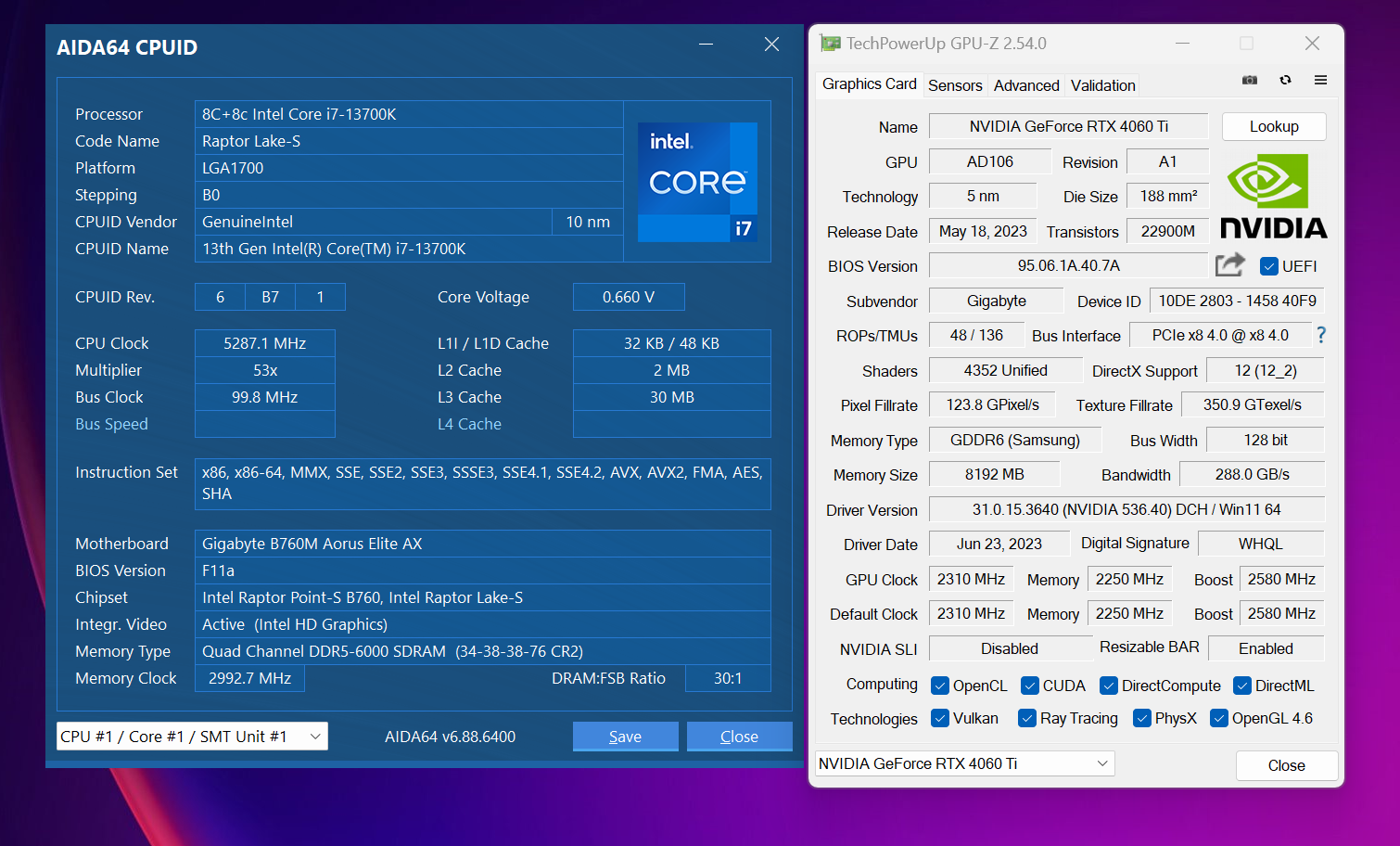 显卡方面,硬核目前没有RTX4060Ti在手,不过有之前13700K+RTX4060Ti的测试数据,测试的项目都是吃显卡为多,13700K和13600K在游戏方面差距也不大,大家可以参考一下。