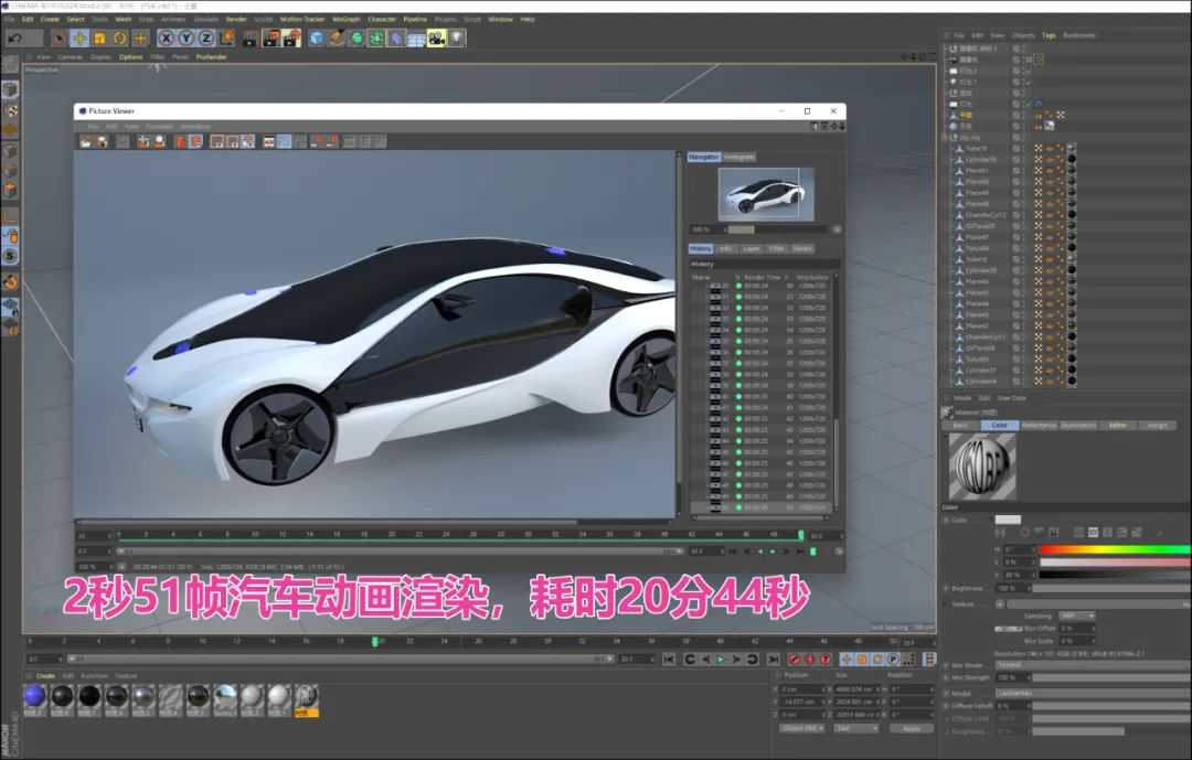 ▲我们用Cinebench的“本体”——Cinema4D进行汽车动画的渲染,2秒,每秒25帧,加上首帧共计51帧,总耗时20分44秒,算是不错的表现。相应的,87W功率释放的i712700H比它少耗时19%,但功率却高出它24%,平台整体功耗更是高出32%。说简单点就是:R76800H平台是专业应用中的“节能低热选择”。